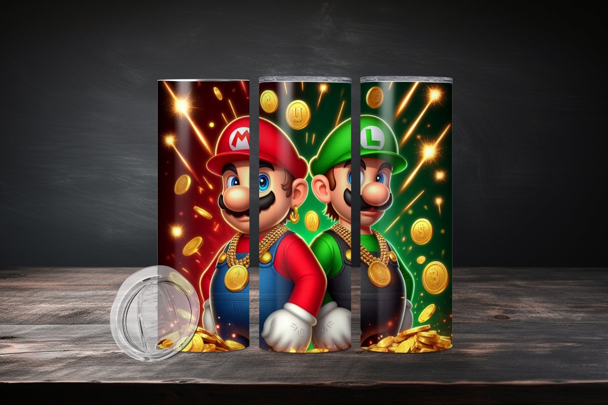 Regular tumbler option is the white base, Stainless Steel option the image is pressed onto the bare stainless. This results in a metallic chrome look that looks great with bright colors and high contrast.