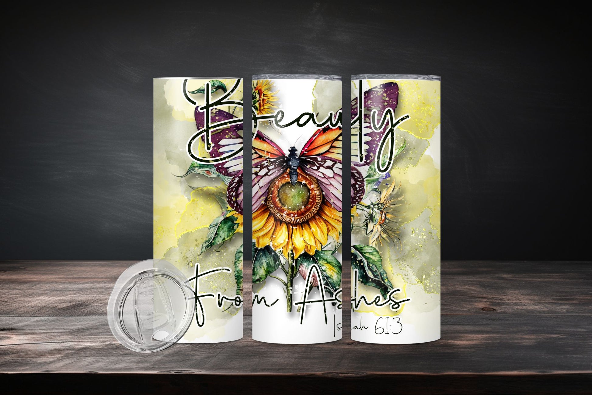 Regular tumbler option is the white base, Stainless Steel option the image is pressed onto the bare stainless. This results in a metallic chrome look that looks great with bright colors and high contrast.