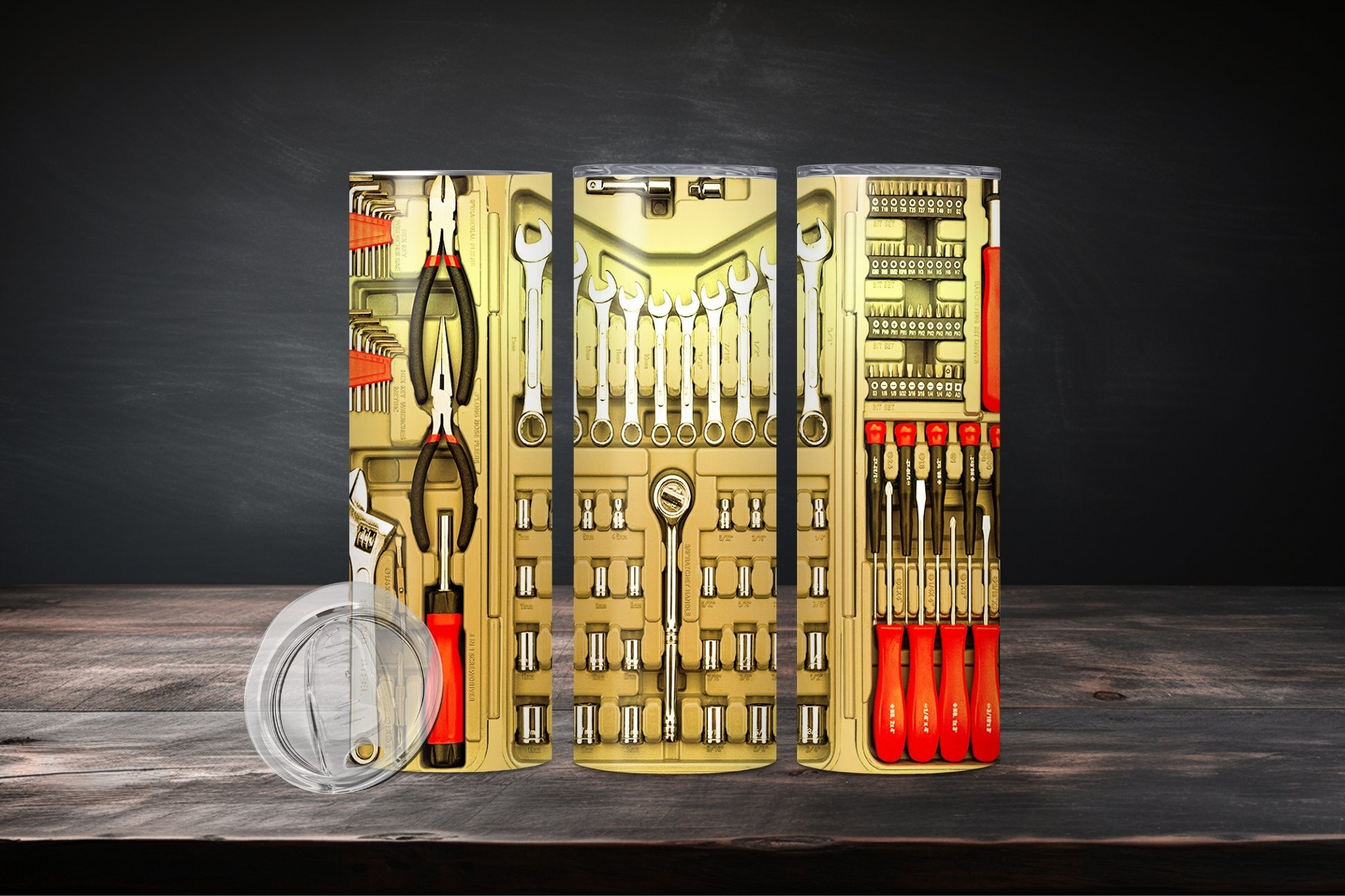 Regular tumbler option is the white base, Stainless Steel option the image is pressed onto the bare stainless. This results in a metallic chrome look that looks great with bright colors and high contrast.