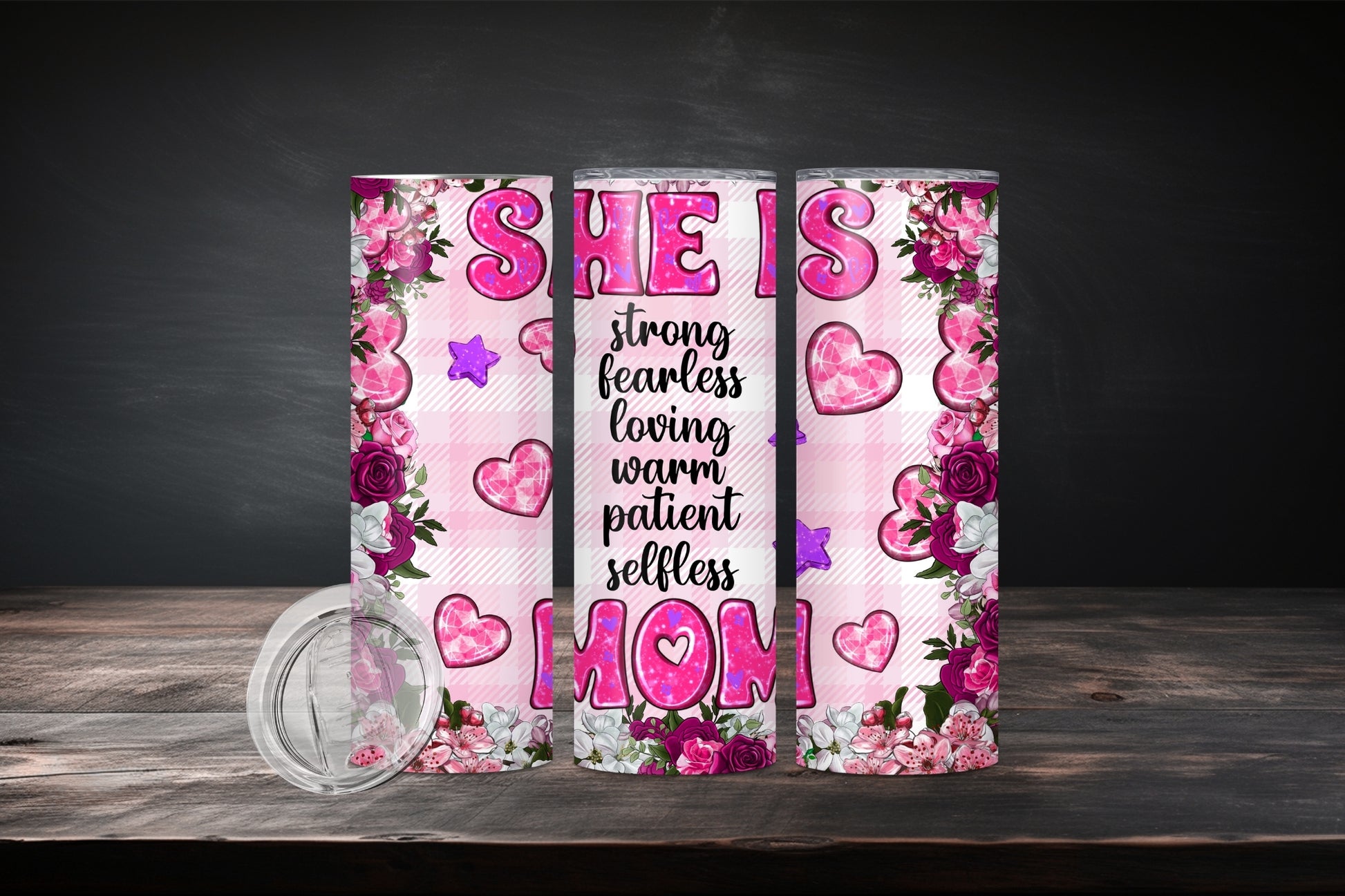 Regular tumbler option is the white base, Stainless Steel option the image is pressed onto the bare stainless. This results in a metallic chrome look that looks great with bright colors and high contrast.