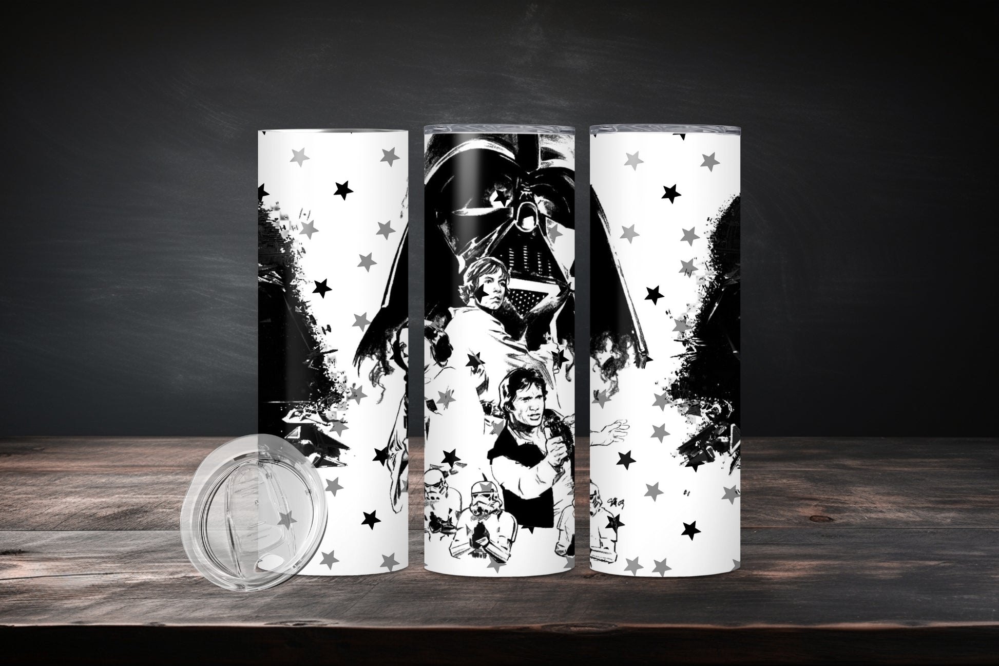 Regular tumbler option is the white base, Stainless Steel option the image is pressed onto the bare stainless. This results in a metallic chrome look that looks great with bright colors and high contrast.