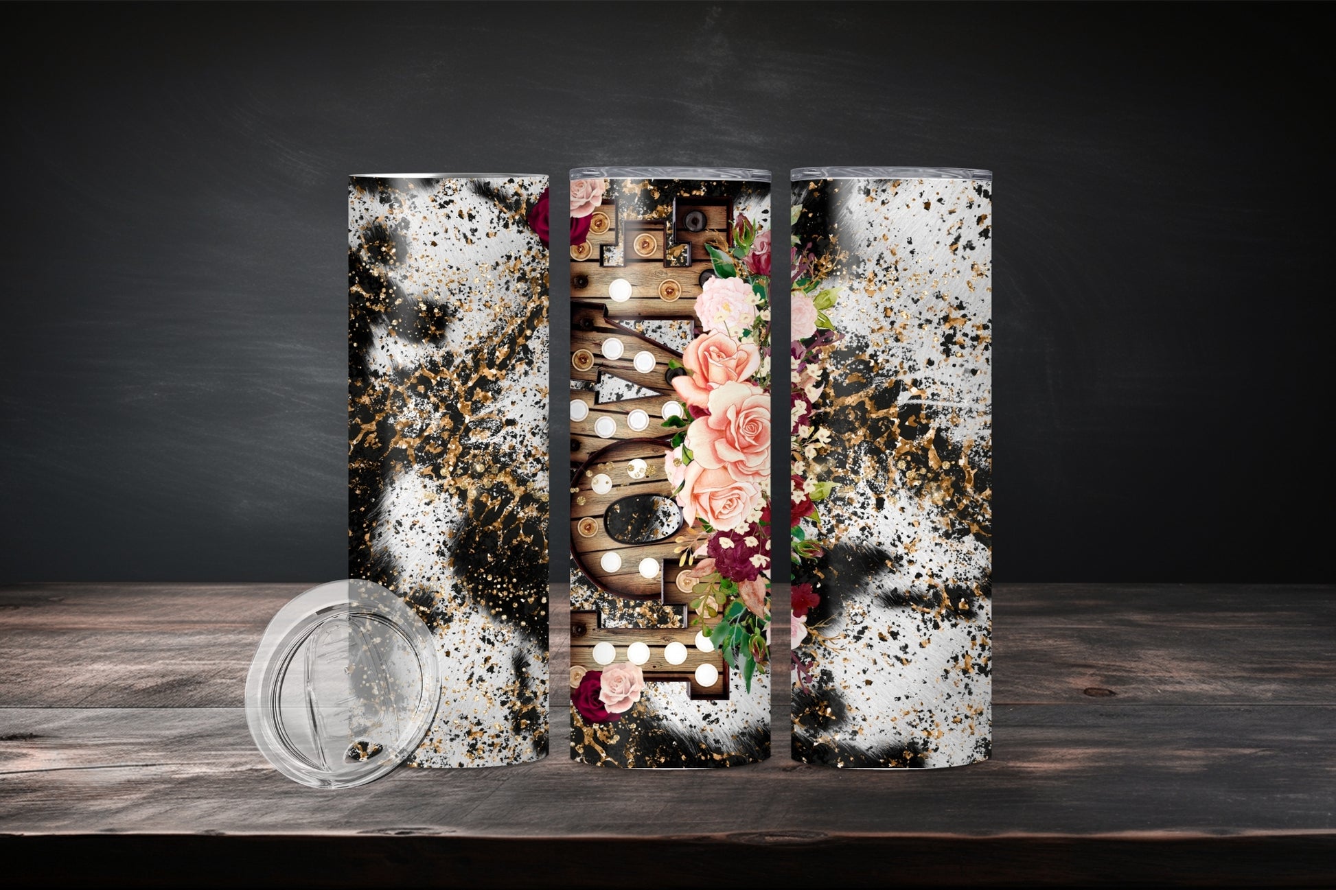 Regular tumbler option is the white base, Stainless Steel option the image is pressed onto the bare stainless. This results in a metallic chrome look that looks great with bright colors and high contrast.