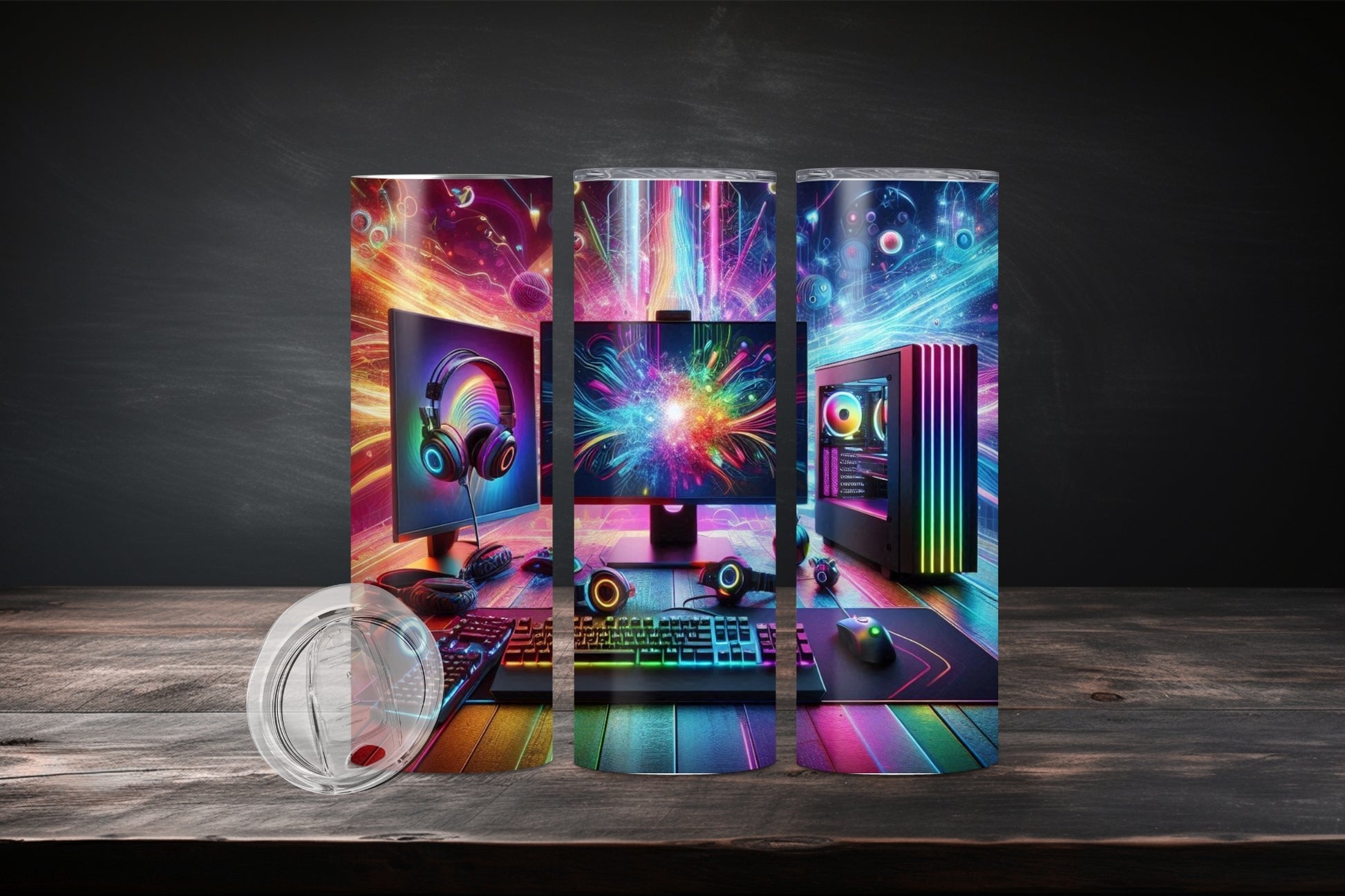 Regular tumbler option is the white base, Stainless Steel option the image is pressed onto the bare stainless. This results in a metallic chrome look that looks great with bright colors and high contrast.