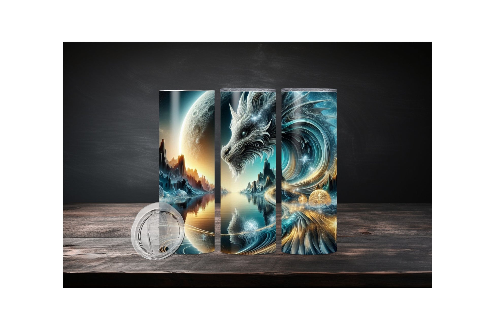 Regular tumbler option is the white base, Stainless Steel option the image is pressed onto the bare stainless. This results in a metallic chrome look that looks great with bright colors and high contrast.