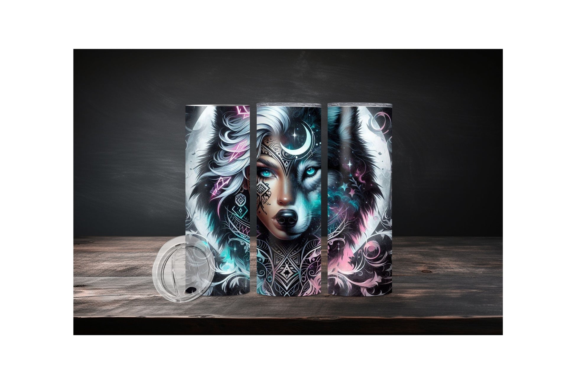 Regular tumbler option is the white base, Stainless Steel option the image is pressed onto the bare stainless. This results in a metallic chrome look that looks great with bright colors and high contrast.