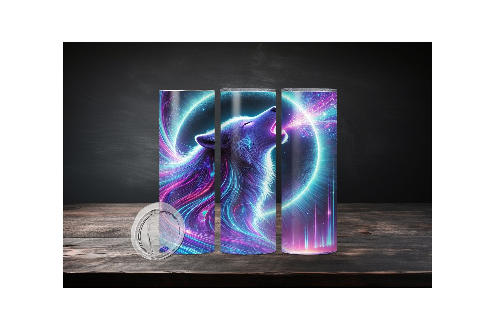 Regular tumbler option is the white base, Stainless Steel option the image is pressed onto the bare stainless. This results in a metallic chrome look that looks great with bright colors and high contrast.