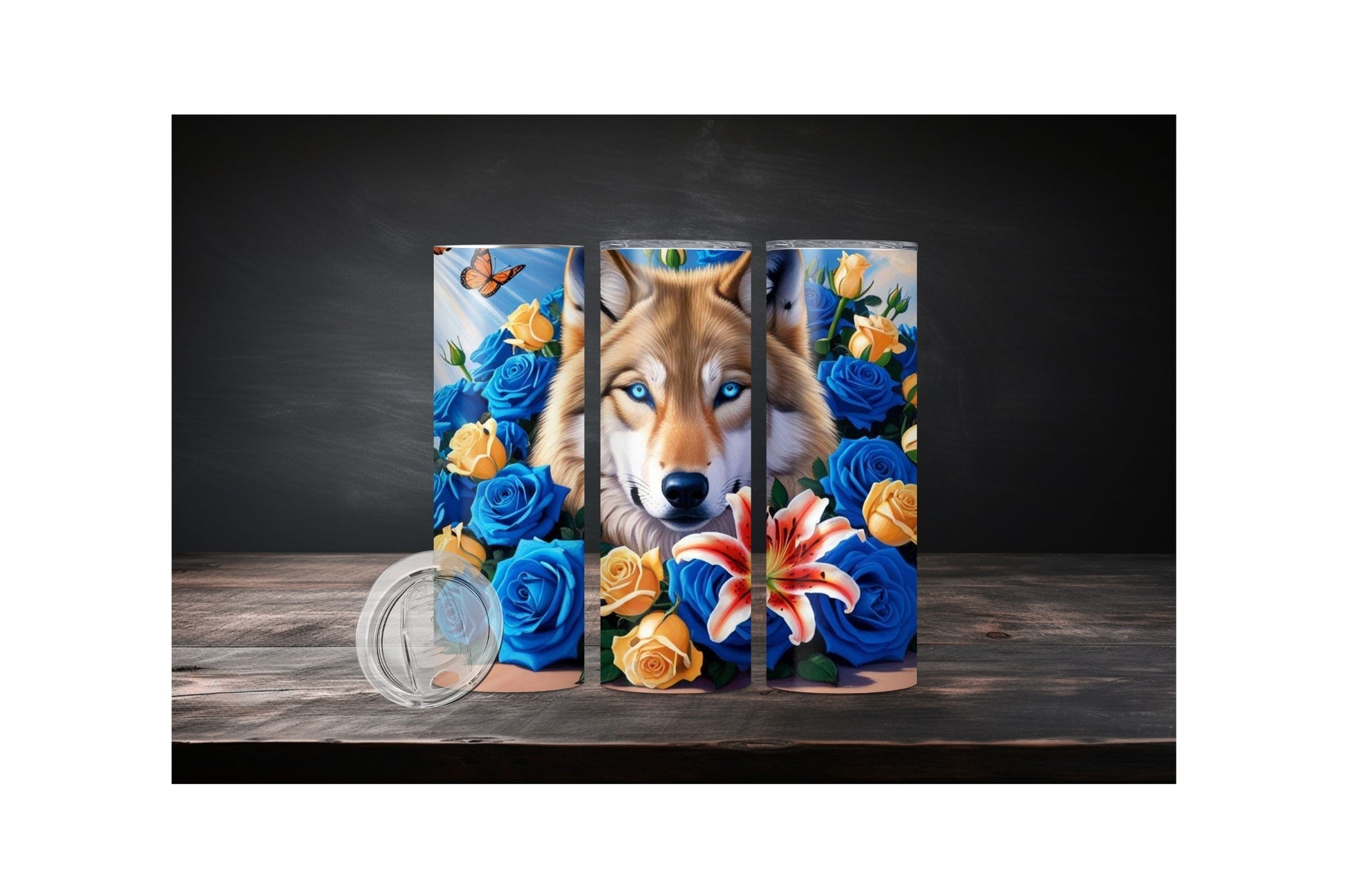 Regular tumbler option is the white base, Stainless Steel option the image is pressed onto the bare stainless. This results in a metallic chrome look that looks great with bright colors and high contrast.