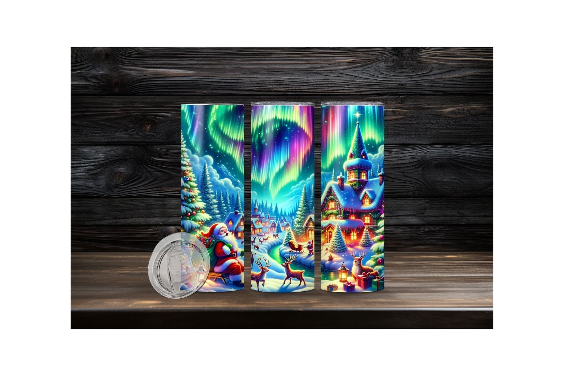 Regular tumbler option is the white base, Stainless Steel option the image is pressed onto the bare stainless. This results in a metallic chrome look that looks great with bright colors and high contrast.