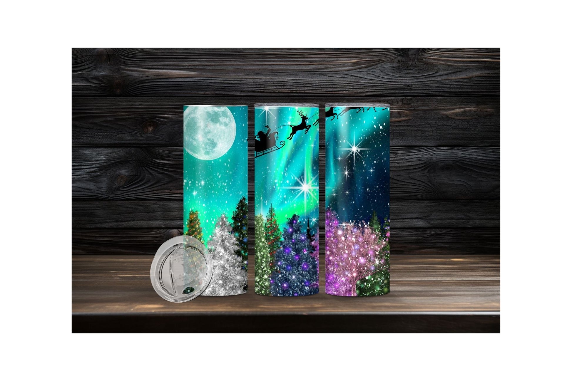 Regular tumbler option is the white base, Stainless Steel option the image is pressed onto the bare stainless. This results in a metallic chrome look that looks great with bright colors and high contrast.