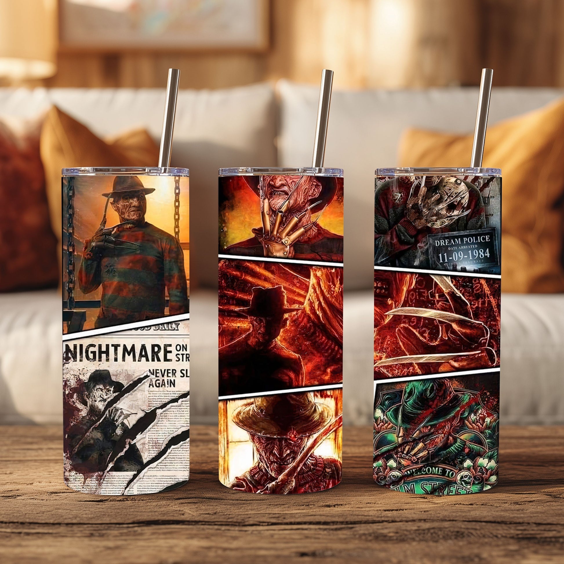 Regular tumbler option is the white base, Stainless Steel option the image is pressed onto the bare stainless. This results in a metallic chrome look that looks great with bright colors and high contrast.