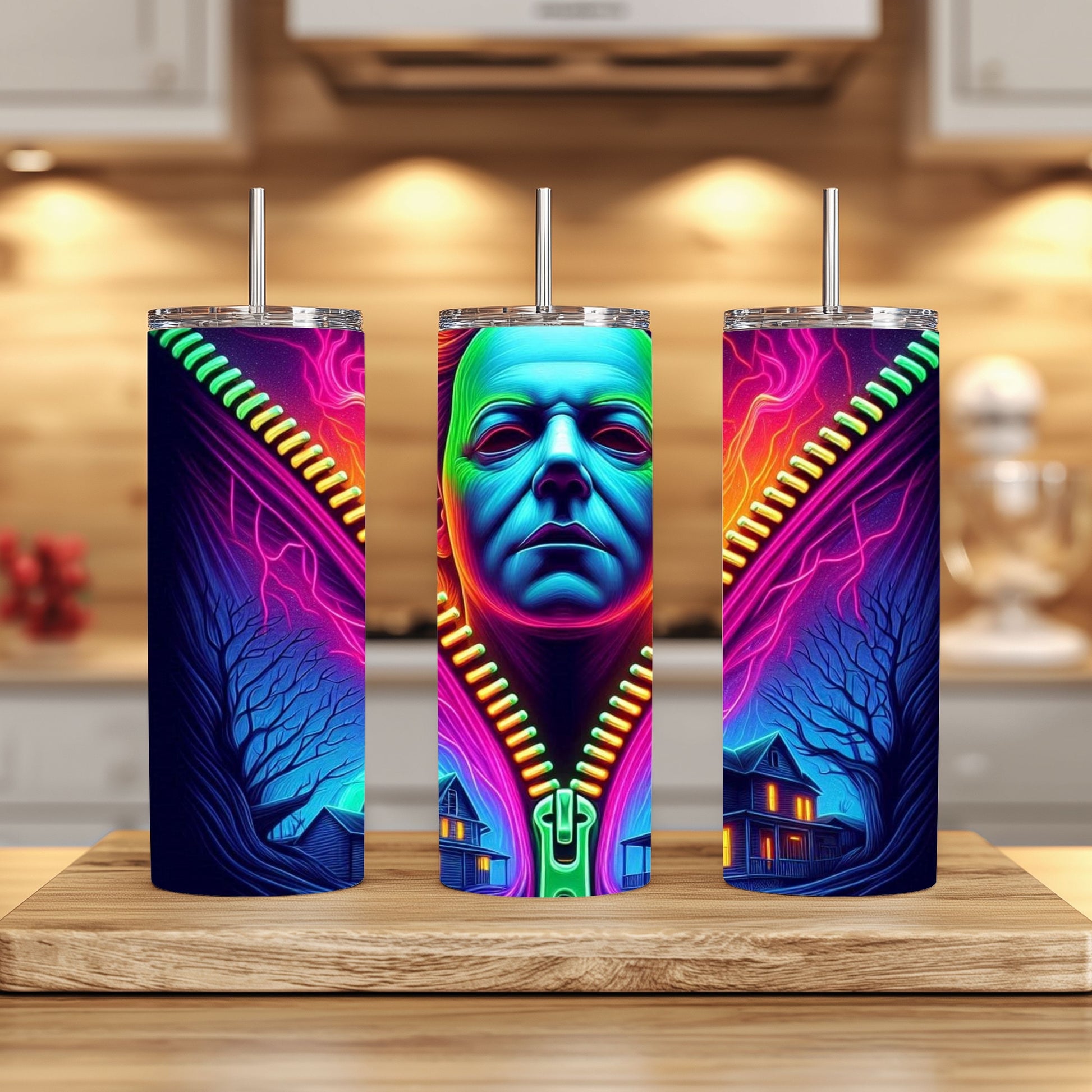 Regular tumbler option is the white base, Stainless Steel option the image is pressed onto the bare stainless. This results in a metallic chrome look that looks great with bright colors and high contrast.
