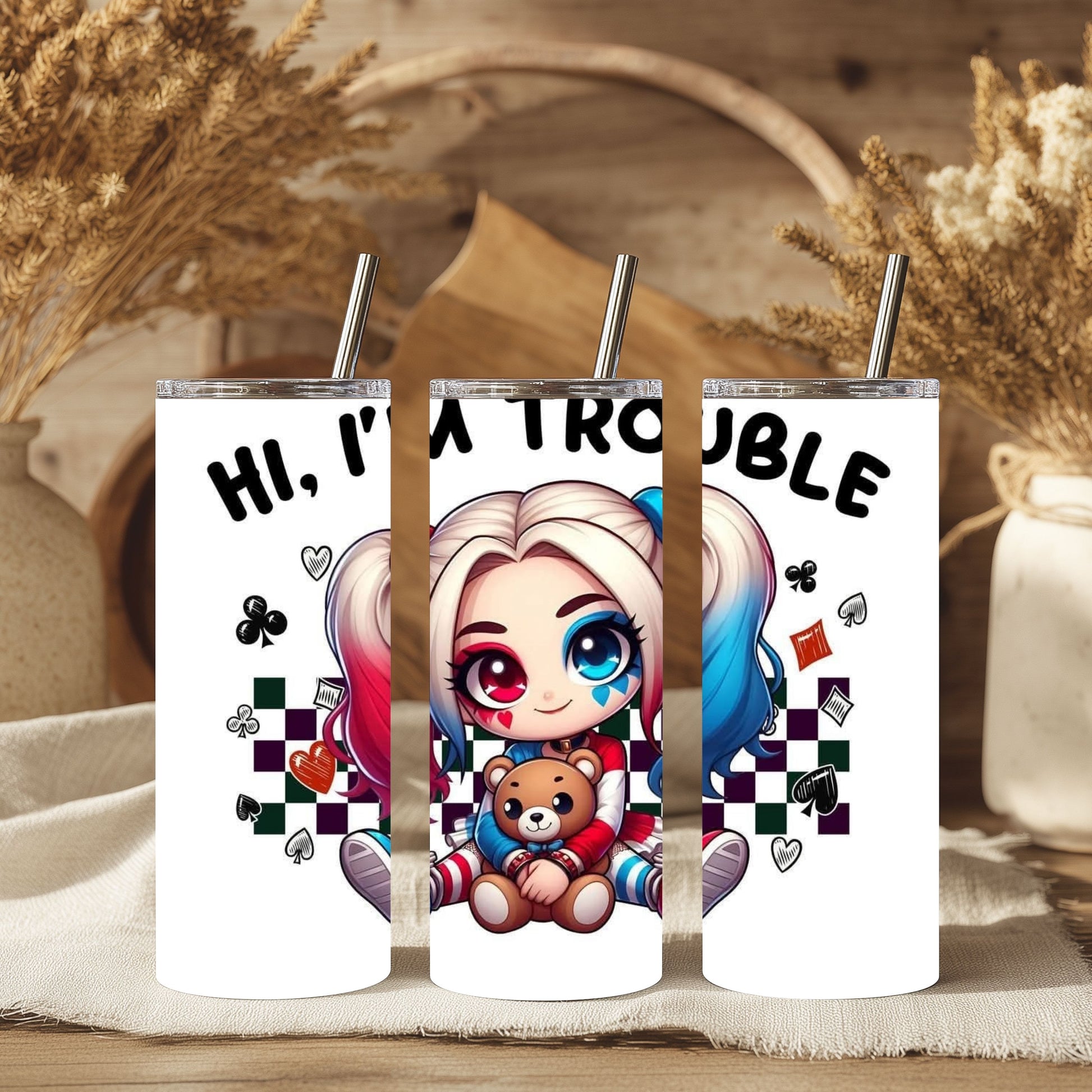 Regular tumbler option is the white base, Stainless Steel option the image is pressed onto the bare stainless. This results in a metallic chrome look that looks great with bright colors and high contrast.
