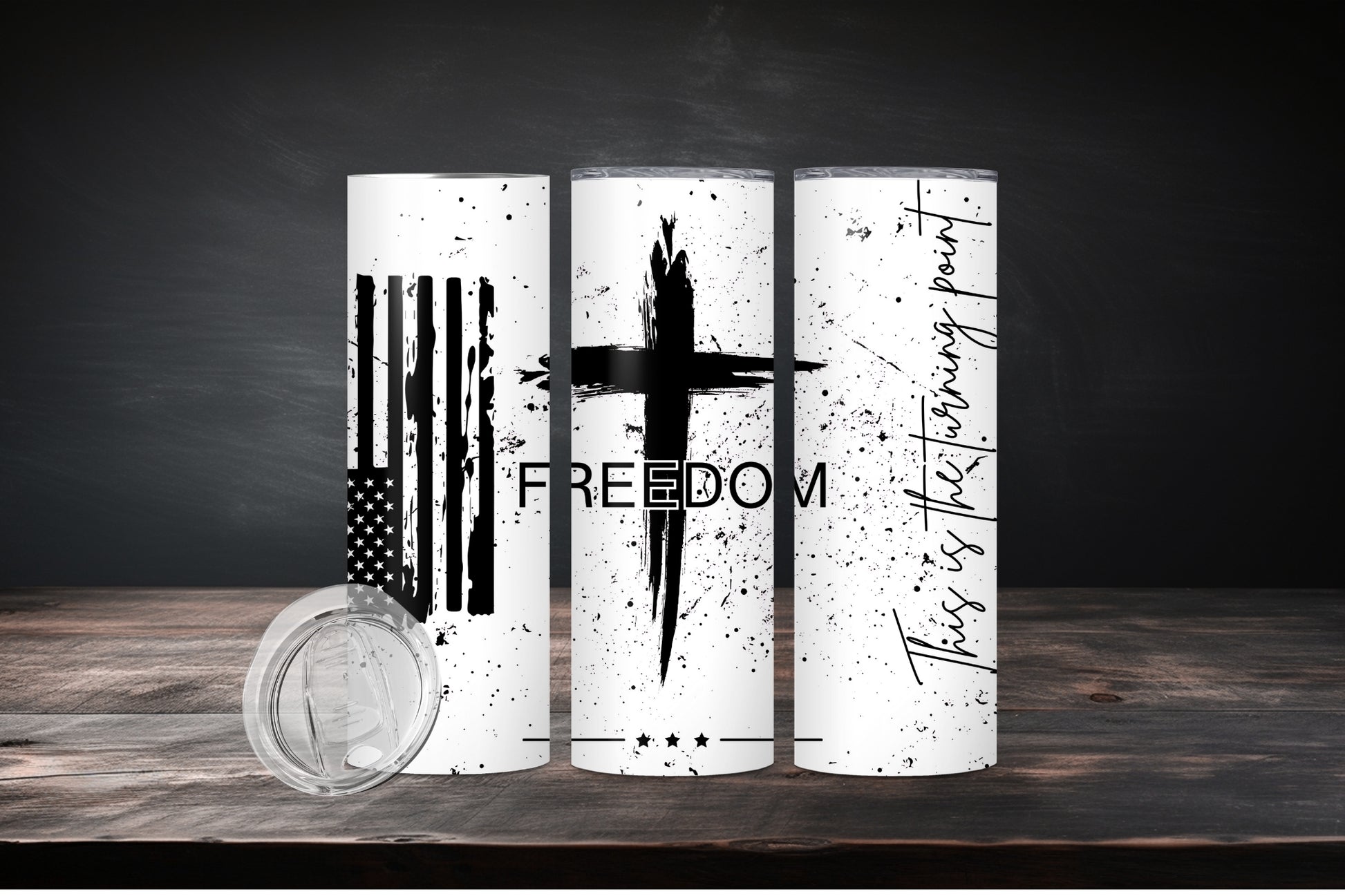 Regular tumbler option is the white base, Stainless Steel option the image is pressed onto the bare stainless. This results in a metallic chrome look that looks great with bright colors and high contrast.