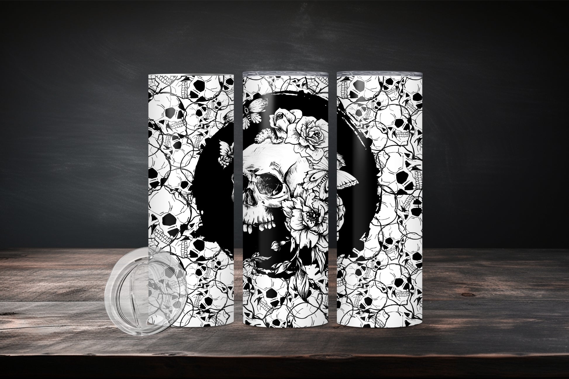 Regular tumbler option is the white base, Stainless Steel option the image is pressed onto the bare stainless. This results in a metallic chrome look that looks great with bright colors and high contrast.